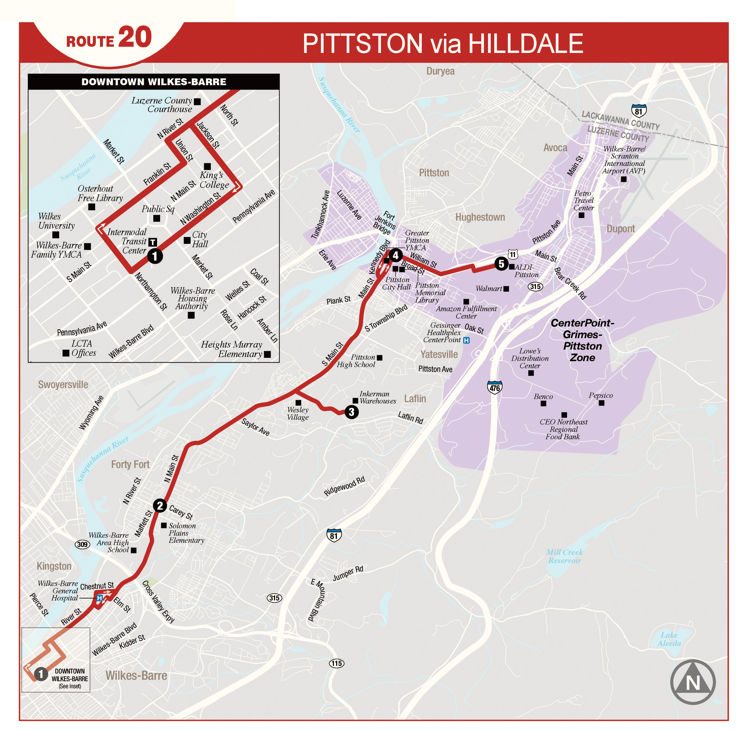 Intermodal Transit Center Carey St. & N. Main St. Main St. & Broad St. N. Main St. & William St. Inkerman Warehouses Aldi (Pittston)